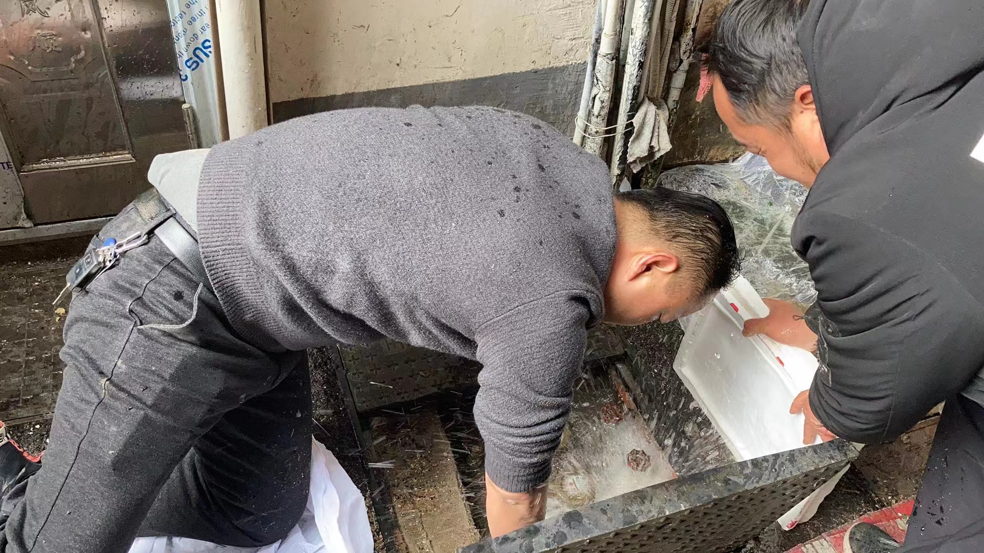 與此同時,客戶服務中心的搶修人員在小區(qū)幫助用戶解凍通水,為了便于操作,搶修人員不戴手套跪在已經(jīng)上凍的表井池旁伸進冰冷水中進行維修,雙手凍得通紅,渾身直打顫,絕大多數(shù)人搶修人員的手、腳都凍傷了,但為了用戶們能夠盡快用上水,可他們卻義無反顧,“我們也知道冷,但是沒辦法,戴上手套不好操作,為讓用戶早些有水可用,我們一直都是這么做的”。為了用戶們能夠盡快用上水,他們的工作沒有停息過。