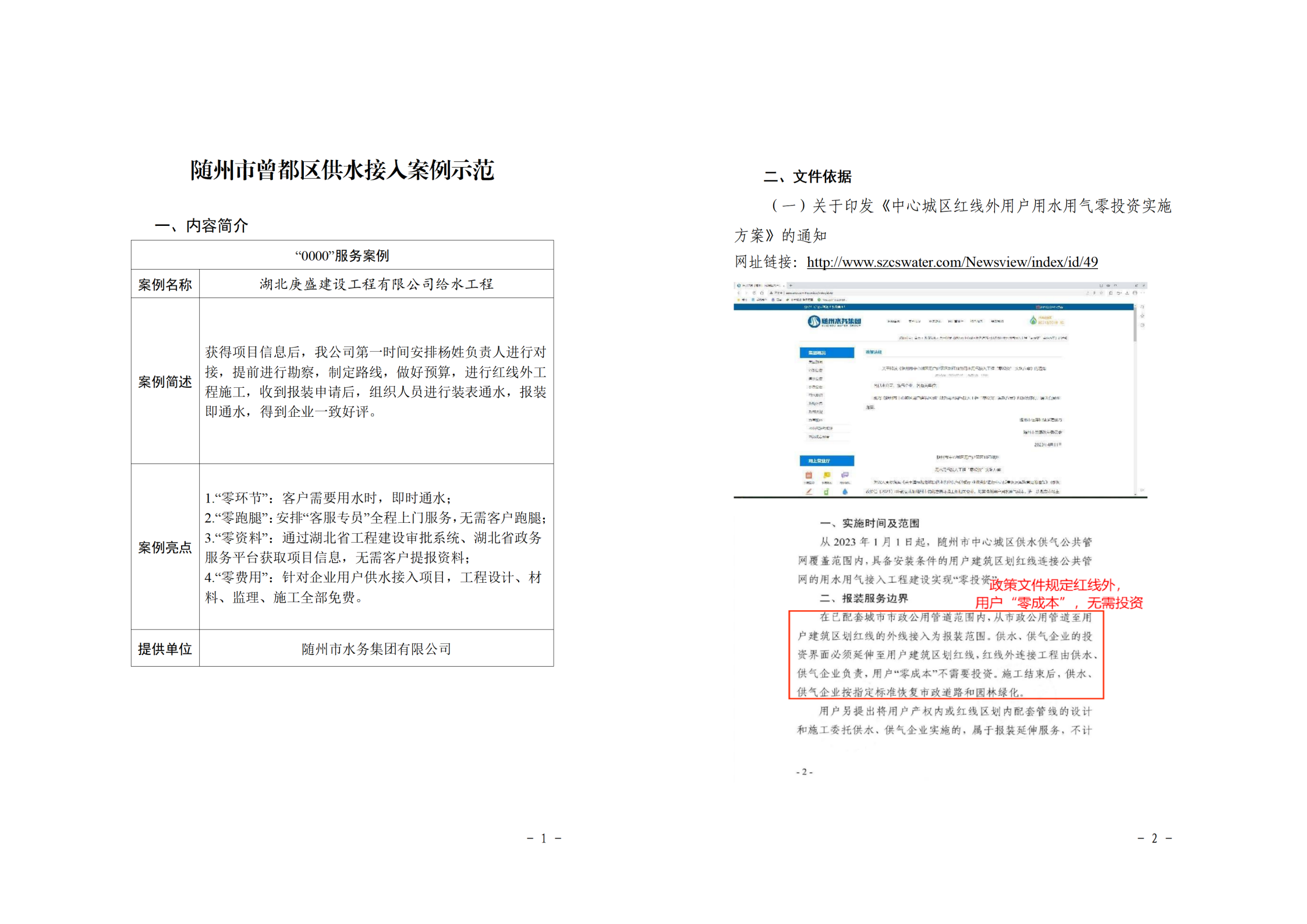 隨州市供水接入案例示范
