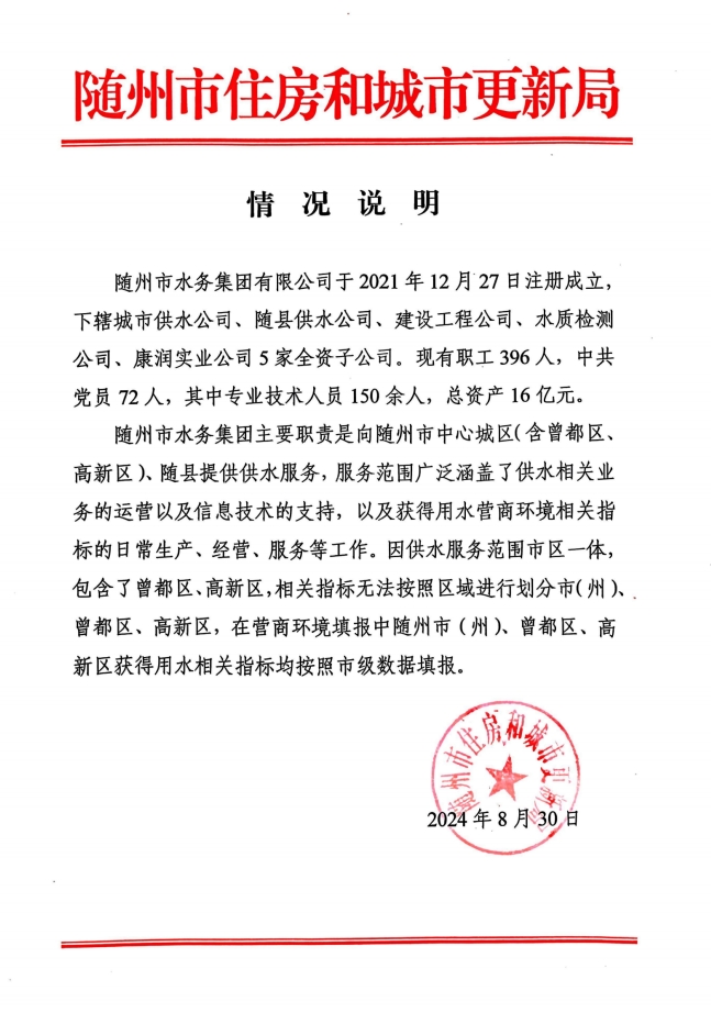 隨州市水務(wù)集團(tuán)基本情況說明