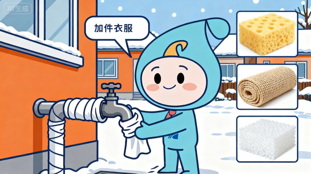 對(duì)暴露在室外的水表、水管、水龍頭等用水設(shè)施,建議采用家中廢舊棉絮、衣物、保溫棉等保暖材料進(jìn)行緊密包裹,確保裹護(hù)嚴(yán)實(shí)無空隙,并及時(shí)更換受潮的保暖材料,保持干燥狀態(tài),有效阻隔低溫侵襲。